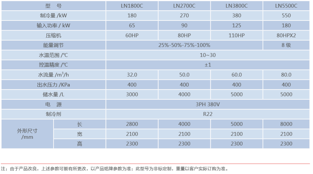 根據(jù)用戶要求的制冷量而定制,制冷主機采用效率更高的螺桿式制冷壓縮機,視功率大小室外機或為單臺和多臺分別控制運行。配 7 寸 PLC 彩色 液晶觸摸屏,功能強大,結(jié)構(gòu)緊湊。選配高效低噪聲風(fēng)機。制冷系統(tǒng)加配經(jīng)濟器和噴液裝置,在提高增提性能的同時,保證壓縮機在環(huán)境溫度下更 可靠的運行。水箱、水泵現(xiàn)場布置。